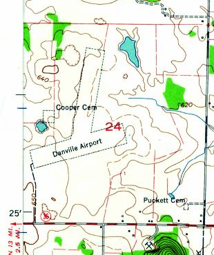 The 1960 USGS topo map (courtesy of Dallam Oliver-Lee) depicted Danville Airport as having 2 unpaved runways.