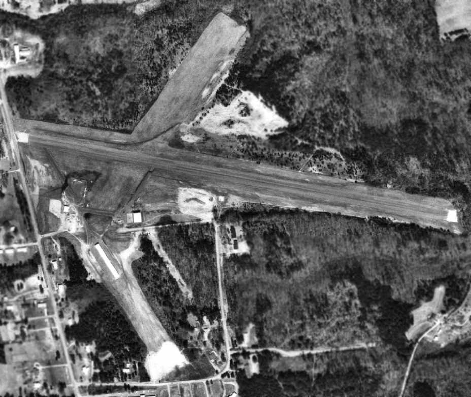 A 1955 aerial view depicted Eutaw Municipal Airport as having 2 unpaved runways, in an X-shape.