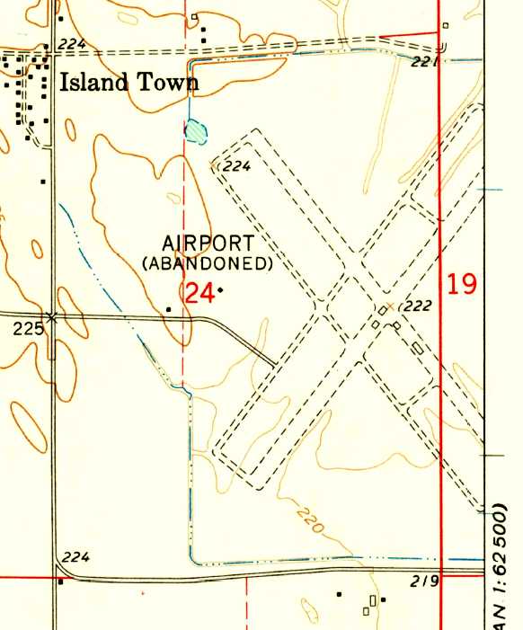 The 1962 USGS topo map depicted the Erwin field as “Airport (Abandoned)”,
