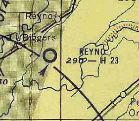 The Walcott “aux field", as depicted on a 1943 a map issued to Walnut Ridge Army Flying School students