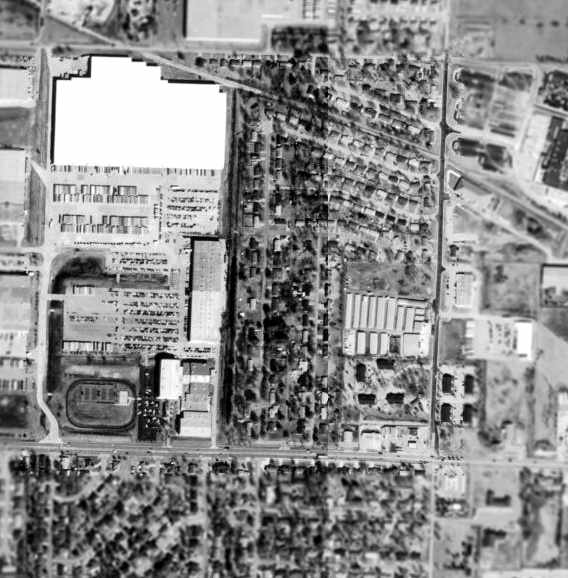 On recent street maps, the location of the original Rogers Airport was covered by residential streets,