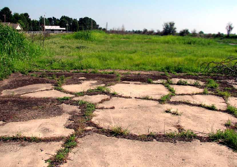 A 2005 photo by Scott Murdock of the remains of a concrete hangar foundation at the site of Eberts Field.