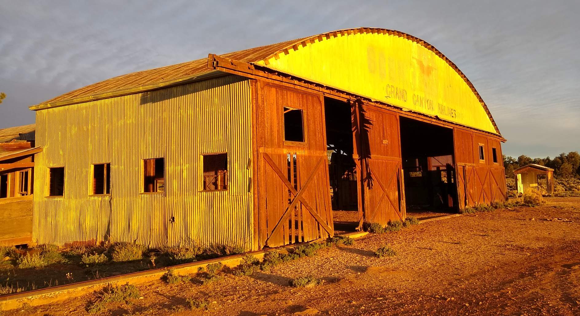 A September 2004 photo by Chris Kennedy of the hangar which remains standing at the site of the Old Grand Canyon Airport.