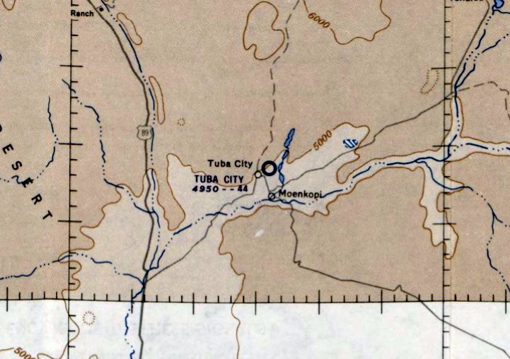 The last dated map depiction which has been located of the 2nd location of Tuba City Airport was on the 1983 USGS topo map.