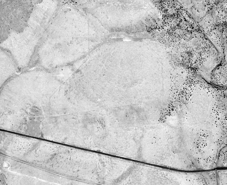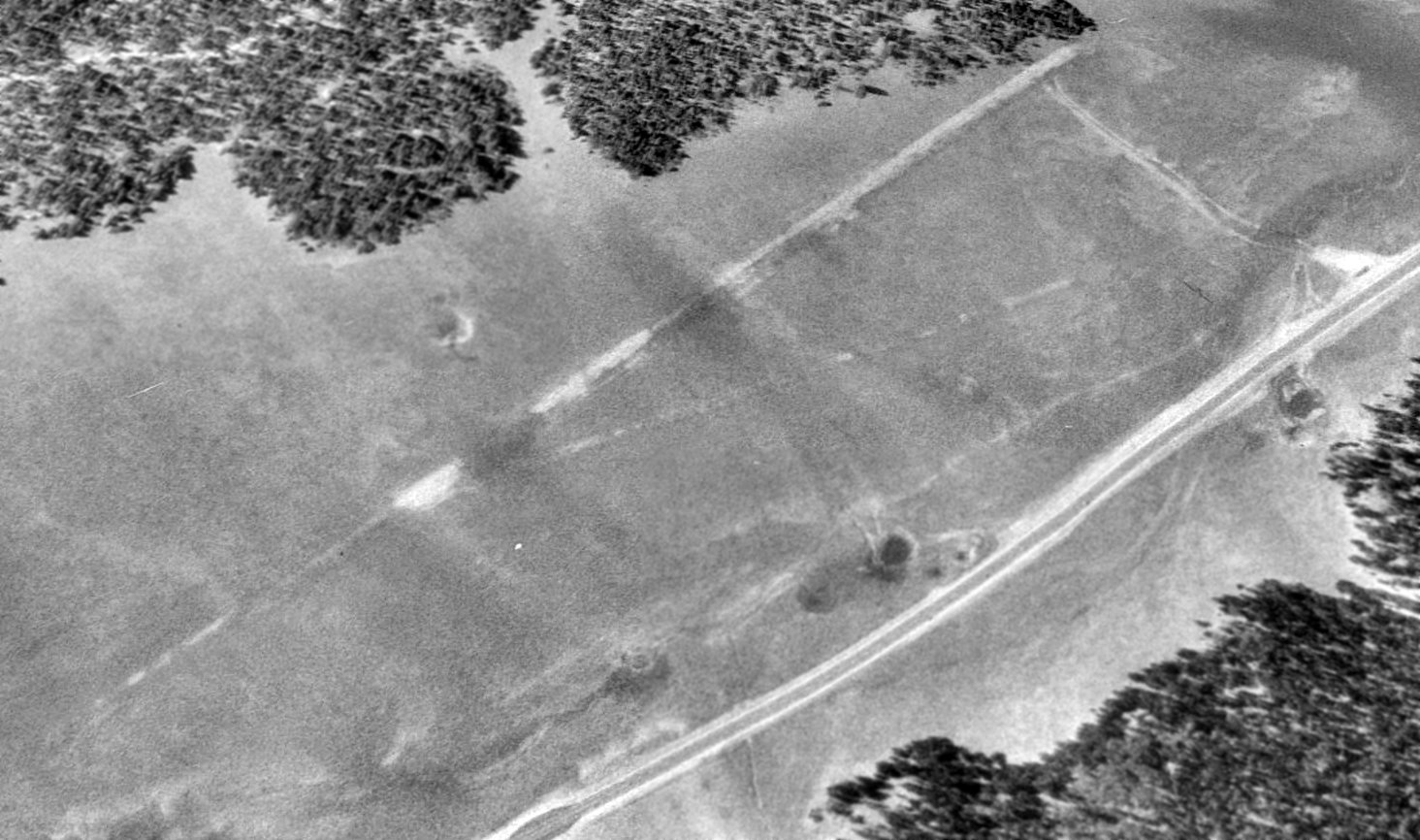 A 3/7/54 USGS aerial view showed faint traces of 2 runways at the site of Koch Field.