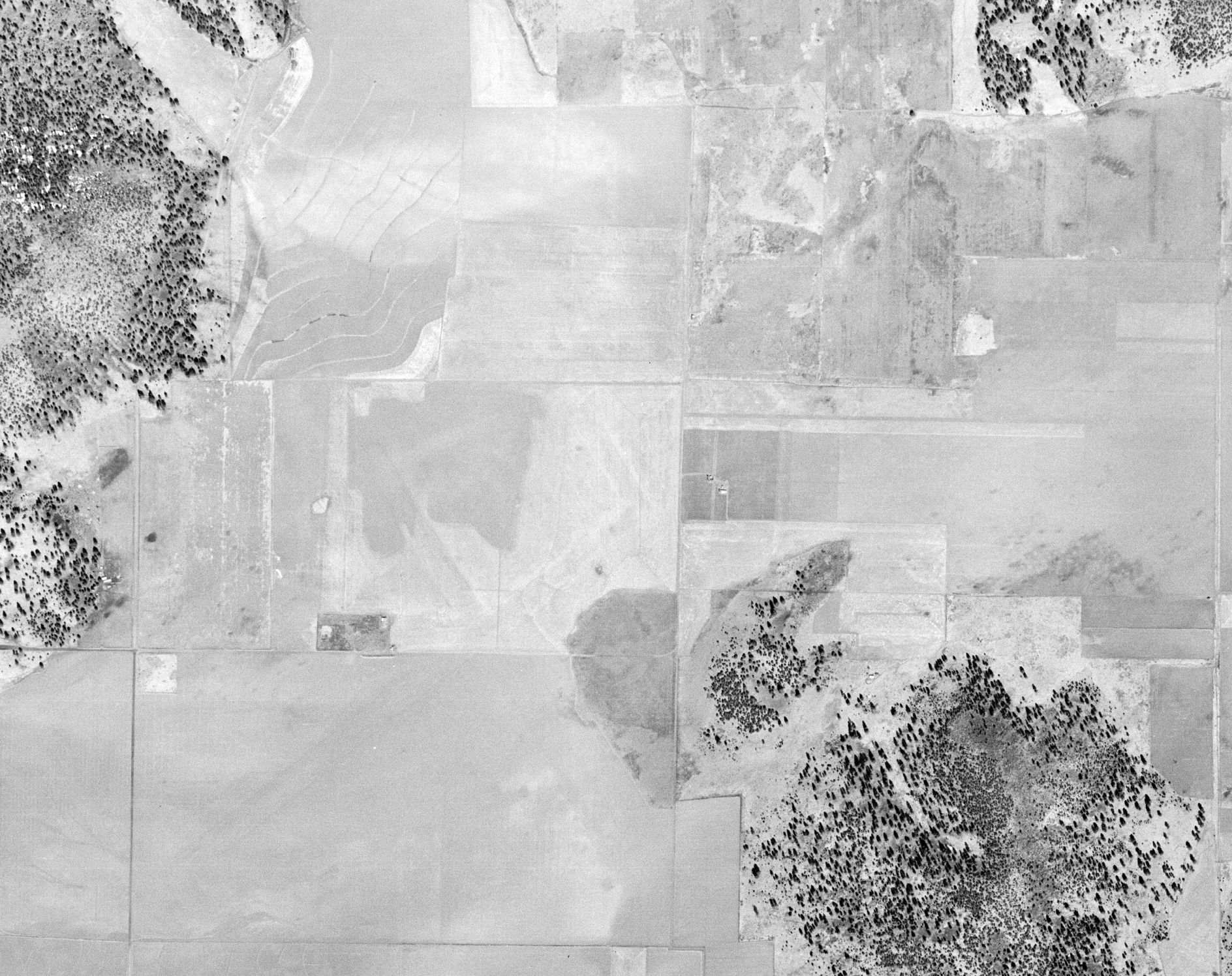 The outlines of Red Butte Airport's 3 former runways were still barely perceptible in a 1992 USGS aerial view looking northeast,