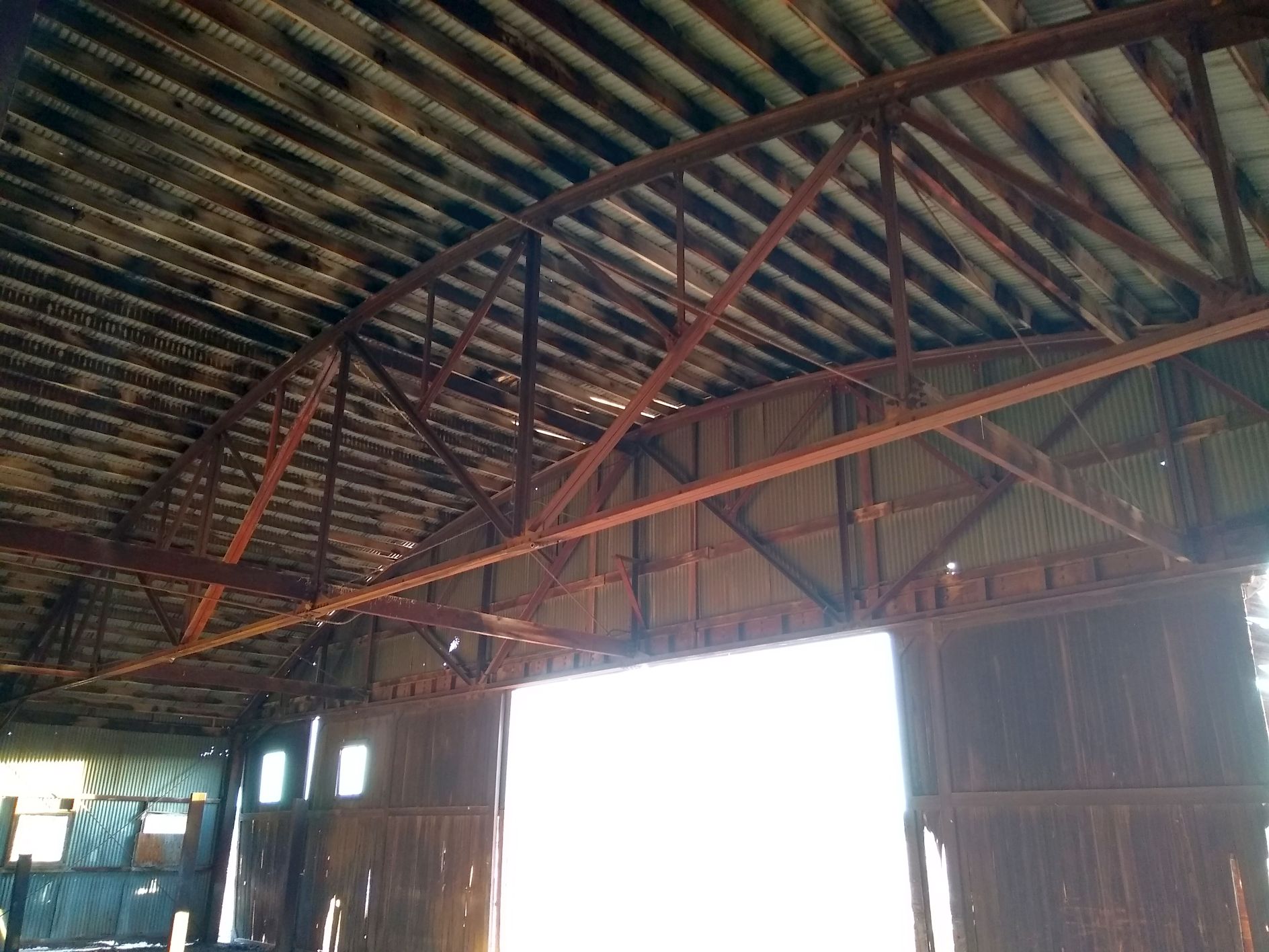 A 2018 photo by Michael LaRose of the roof trusses inside the 80+ year-old hangar which remains standing at Grand Canyon Red Butte Airport.