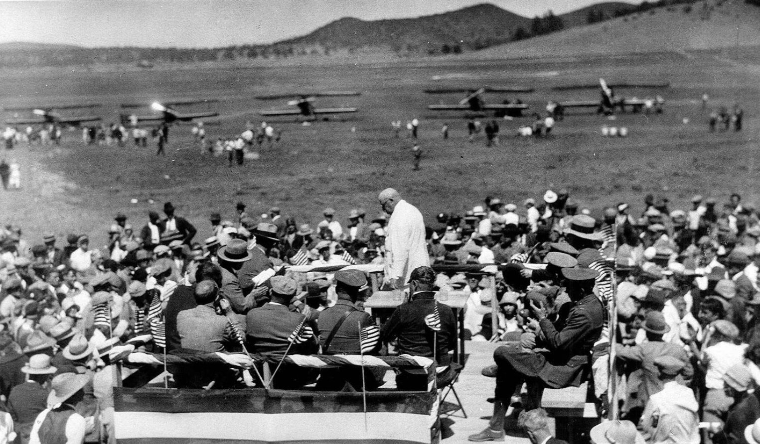 A 7/7/28 photo of Governor George W.P. Hunt returning to the speaker's stand at the Flagstaff Koch Field dedication day ceremonies (courtesy of Carlos Ross).