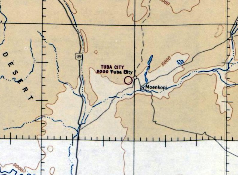 The site of the original Tuba City Airport is located southwest of the intersection of Moenave Street & Old Airport Road, appropriately enough.