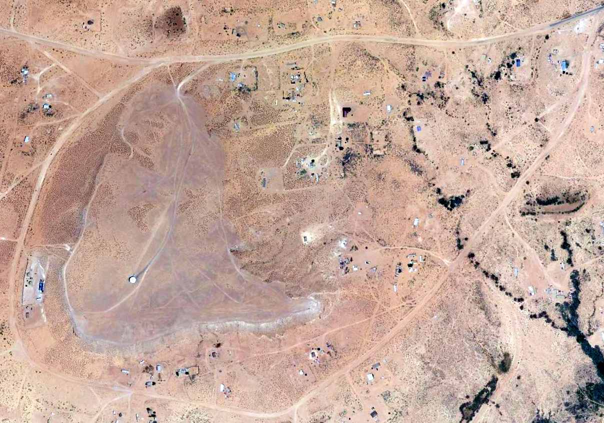 A 2014 aerial view looking north shows the runway of the 2nd location of Tuba City Airport remains recognizable,