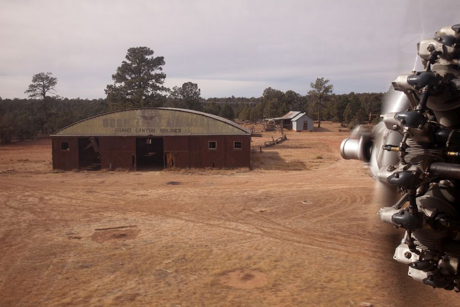 An evocative 2/8/15 photo by Paul Griffiths of Lost Viking Photography of the interior of the Grand Canyon Red Butte Airport hangar.