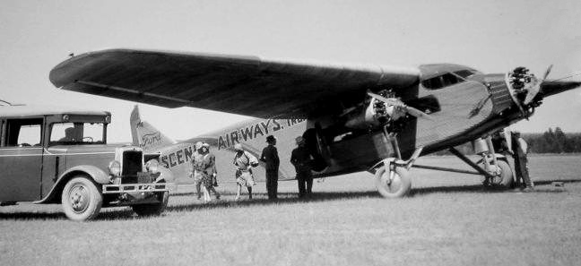 A circa 1930s photo of a Scenic Airways Ford Trimotor.