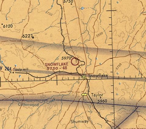 The last aeronautical chart depiction which has been located of Snowflake Municipal Airport was on the June 1971 Phoenix Sectional Chart (courtesy of Ron Plante).