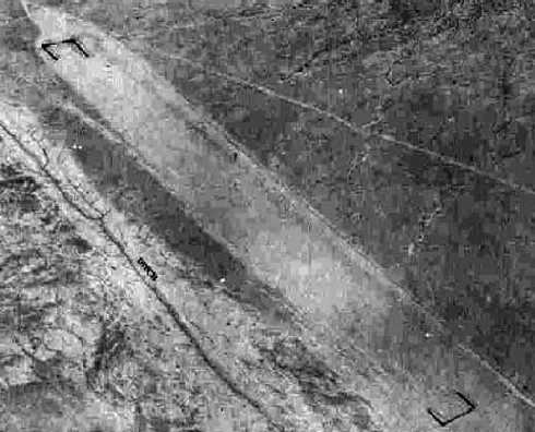 A 6/8/07 aerial view looking northwest along the remains of the Cyclopic Aux AAF #1 runway, remaining remarkably intact after 64 years.