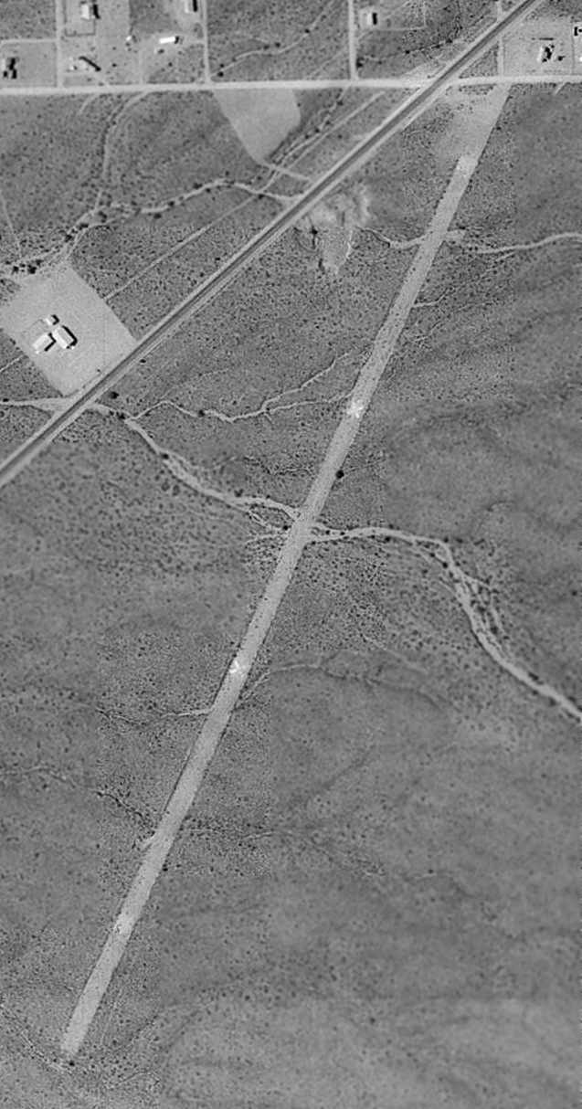 The runways must have been dirt & are completely overgrown with desert bushes of some kind, just like the surrounding area."