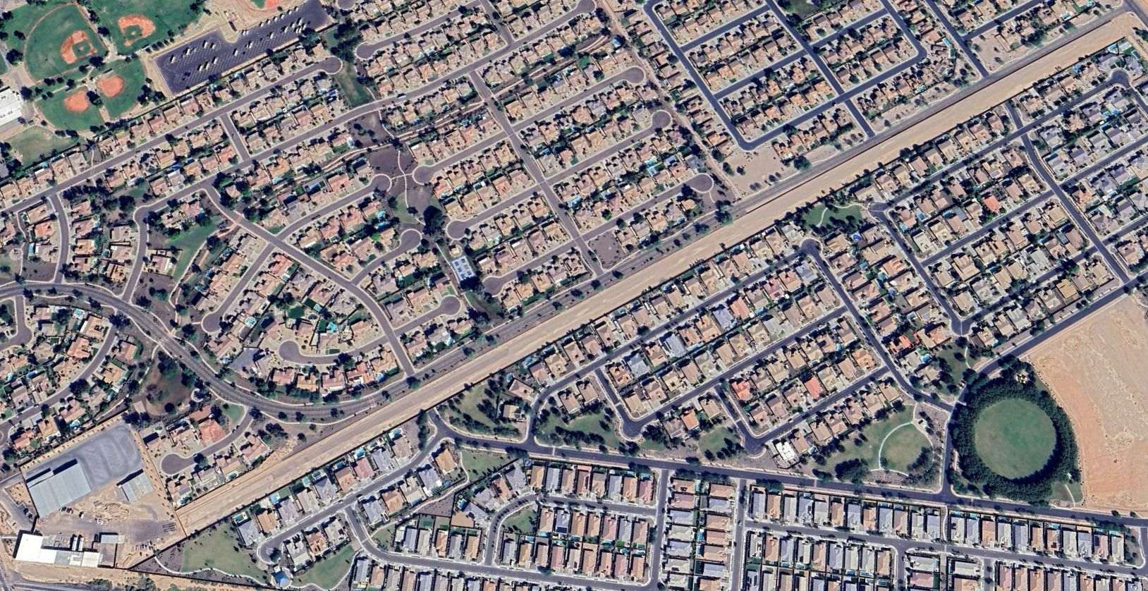 A 2024 photo looking west showed the Queen Creek Airfield runway remained intact, though with houses directly adjacent to both sides.