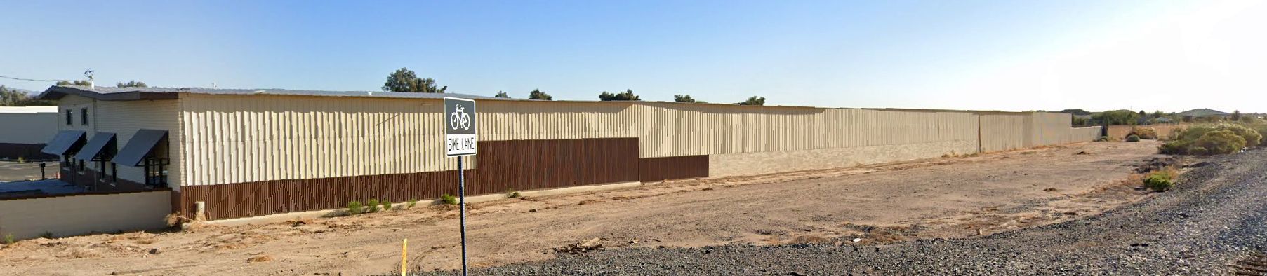 A 2024 photo looking east showed the hangar which remained at the west side of the Queen Creek Airfield site.