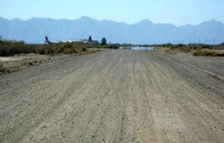 Only weeds seem to grow in the dirt over the runway, and in patterns indicative of cracks in the asphalt.