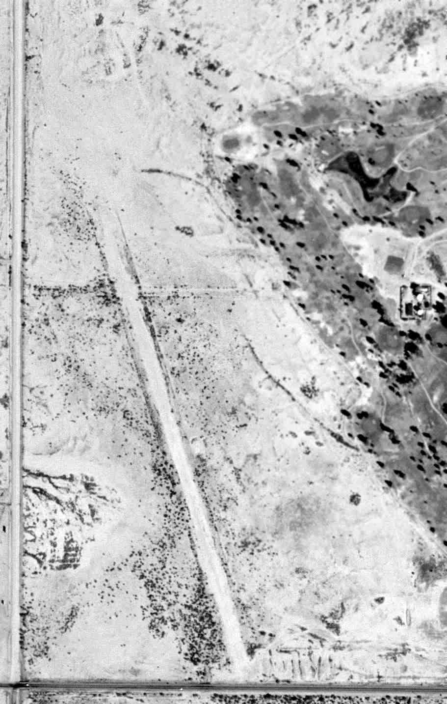 Note also the series of dirt runways adjacent to the north side of the paved runways.