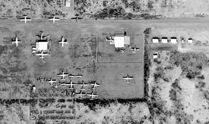 The last photo which has been located showing aircraft at Oasis Airport was a 1973 aerial view, which showed 2 aircraft on the field.