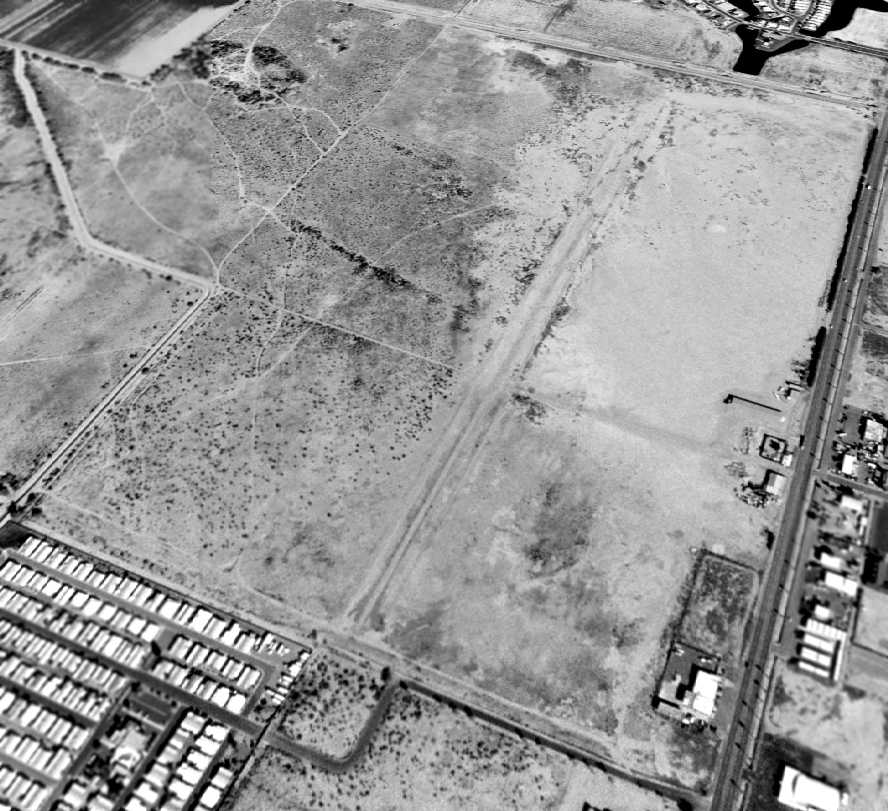 A 1992 USGS aerial view showed the outline of a Gilbert Aux #1 northeast/southwest runway was still barely perceptible in the northeastern portion.