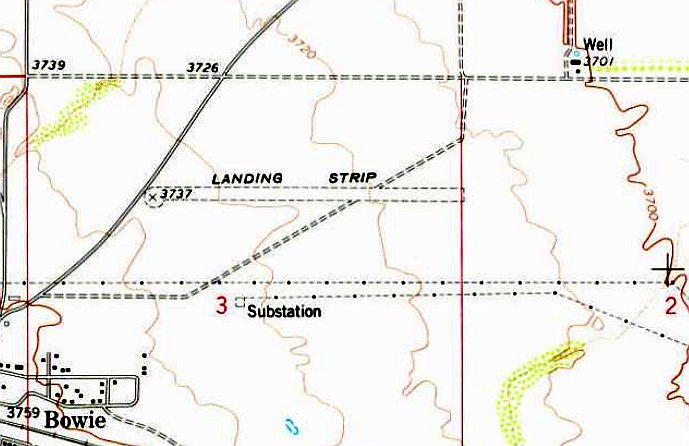 It depicted the Bowie Airport to the west of the town as having a 2,000' unpaved runway.