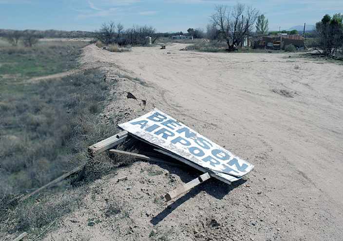 A 2005 photo by Jonathan Westerling of a street sign for “Airstrip Road”.