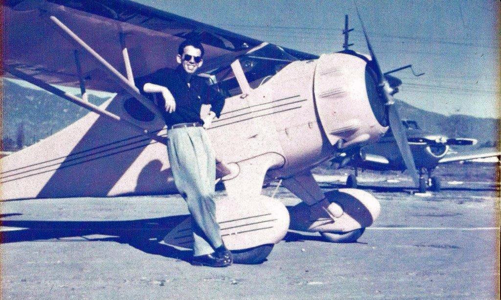 A circa 1950 photo of Joe White with his Monocoupe at Rosemead Airport (courtesy of Dan Rhinehart).
