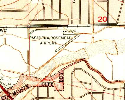 The earliest depiction of an which has been located of this airport in Rosemead was on a 1942 street map (courtesy of Gary Alexander),