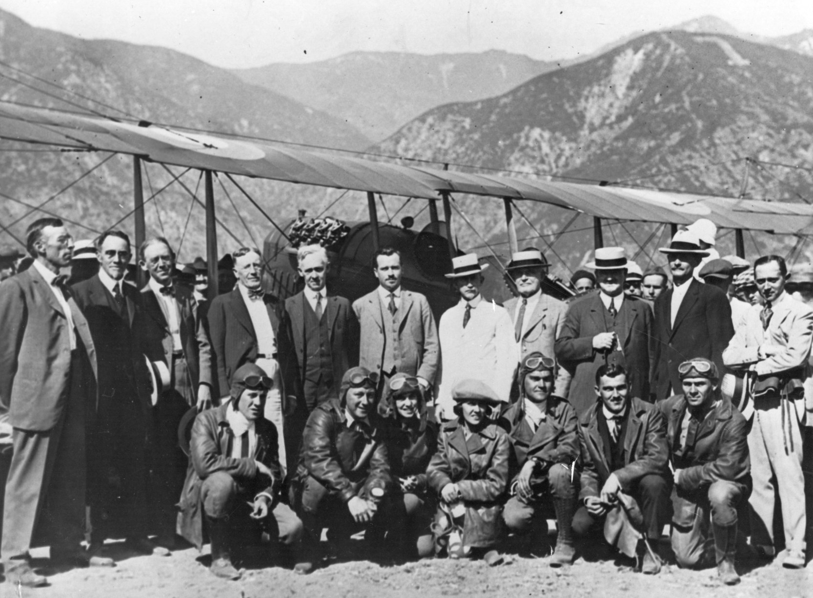 A circa 1919-21 photo of Cecil DeMille & other pilots in front of a plane at Altadena Airport (courtesy of the Altadena Historical Society, via Dan MacPherson).