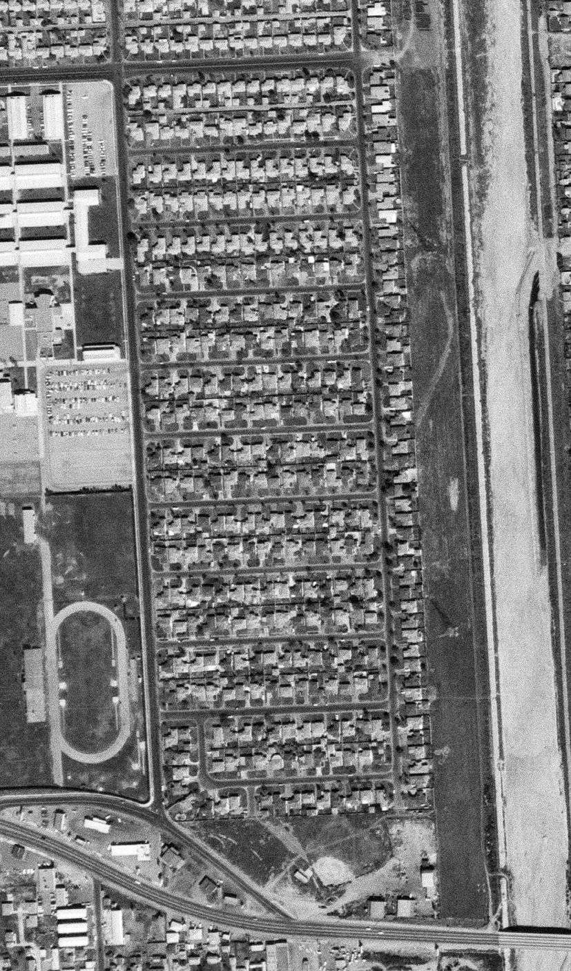 A 1953 aerial view showed dense housing covering the site of Delpert Airport.