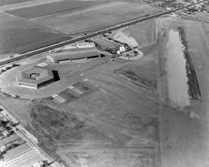 A 1956 aerial photo showed the majority of the Bellflower Airport site was covered by houses, but several hangars remained on the southern side.