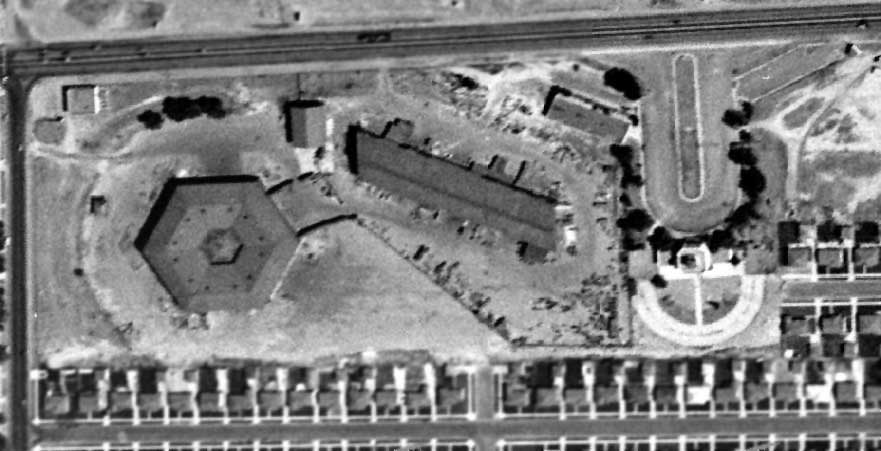 this appears to be contradicted by the 1953 aerial photo, which shows the high school gymnasium already extant