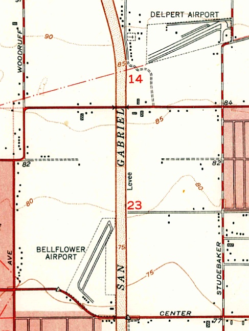 It depicted Bellflower Airport as occupying a mostly rectangular plot of land on the west bank of the San Gabriel River.