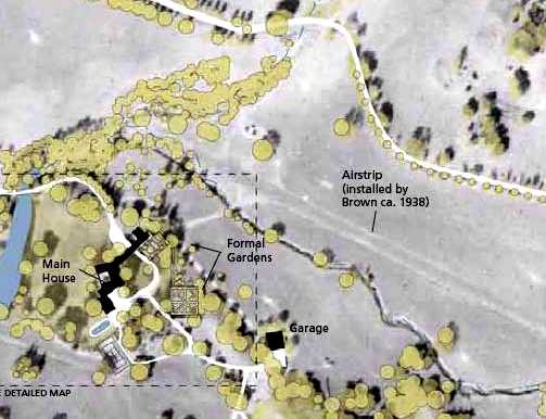 A CA State map depicted “Gillette Ranch Historic Conditions 1954” depicted the “Airstrip installed by Brown circa 1938.”