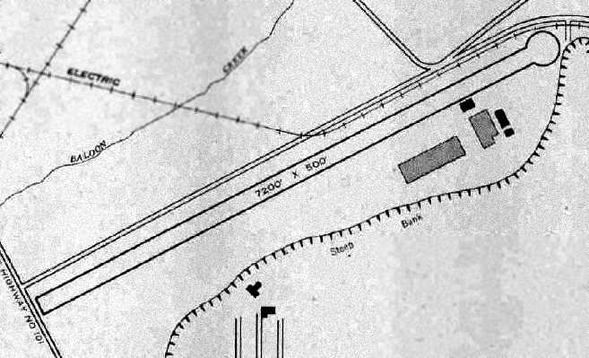 which depicted a single 2,100' paved northwest/southeast runway, with circular turn-around pads at both ends, labeled “Airstrip”,