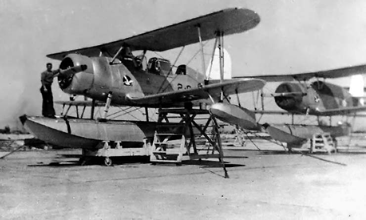 A 1938 U.S. Navy photo of SOC-3 Seagull floatplanes of Observation Squadron Two parked at Reeves Field.