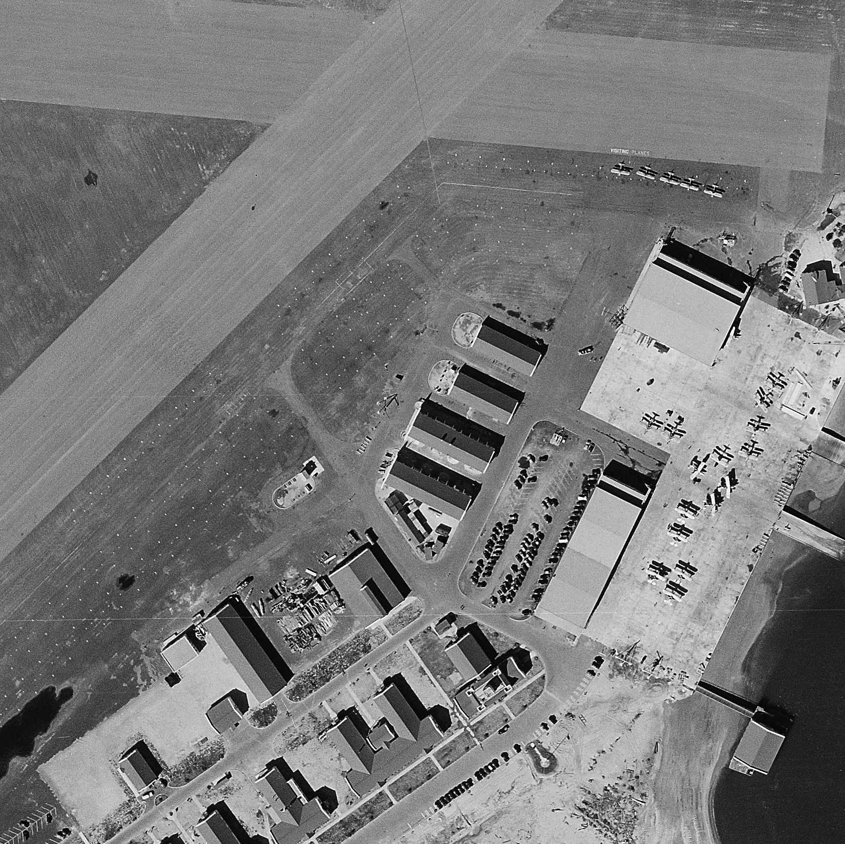 The field consisted of 3 paved runways, with several hangars & other buildings along the south side.