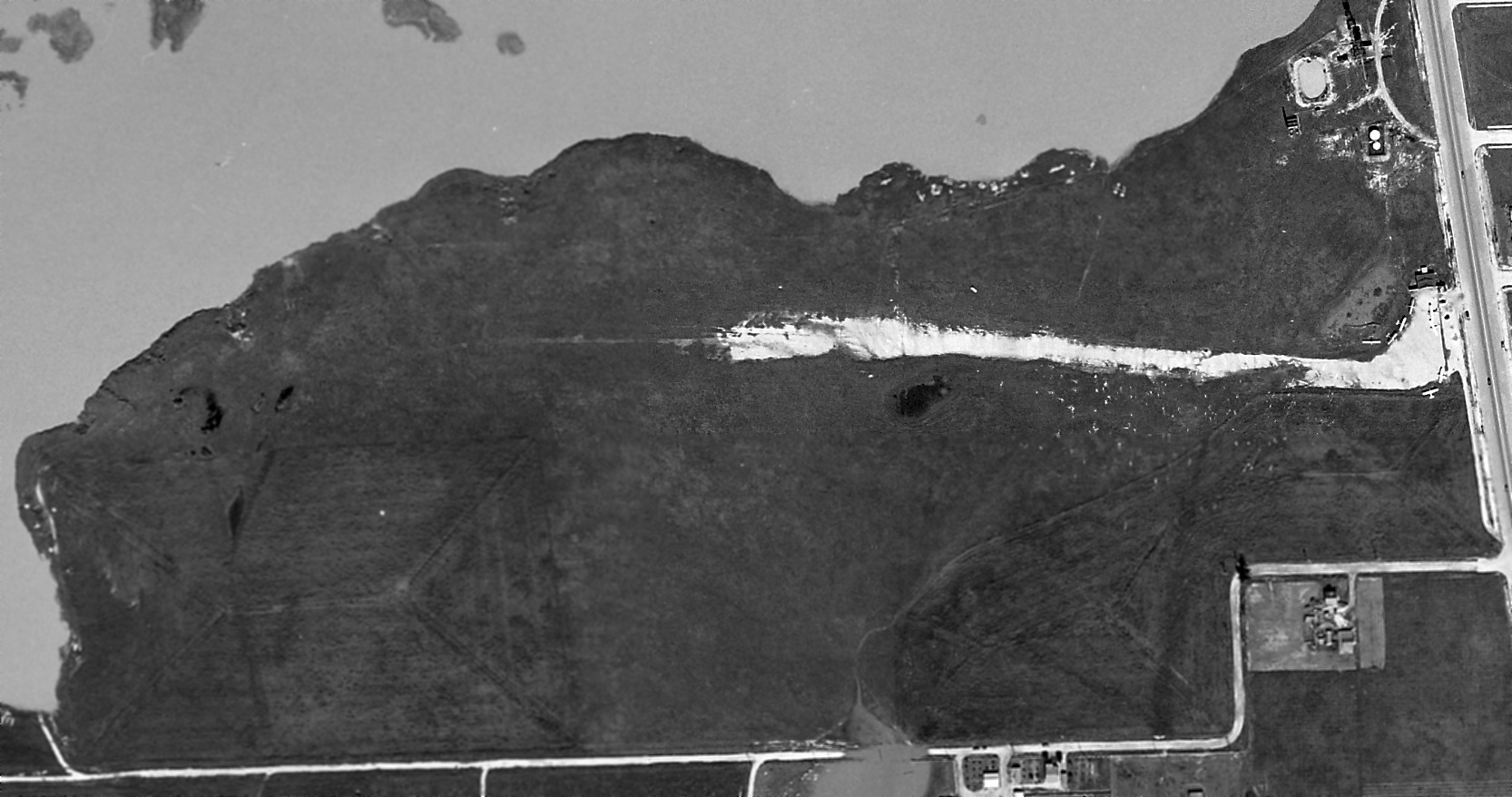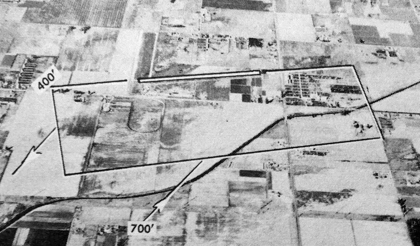 As seen in a 1994 USGS aerial view looking northwest, the asphalt strips that look like runways were built for vehicle testing by UCLA & police training, not for aircraft.