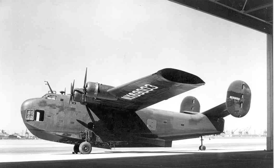 A circa late 1940s photo of a rare Consolidated PB2Y-5R Coronado in civilian markings, owned by Hughes Aircraft, evidently taken at Reeves Field.