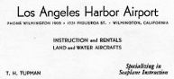A circa 1938-41 business card for T.H. Tupman of Los Angeles Harbor Airport (courtesy of Buzz Tupman),