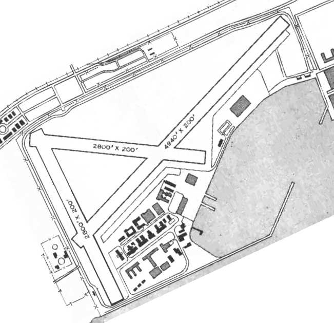 as a 334 acre rectangular property within which were 3 asphaltic concrete runways, the longest being the 4,940' northeast/southwest strip.