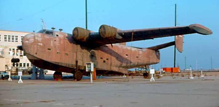 and what appears to be the Consolidated PB2Y Coronado flying boat still parked next to the hangars.