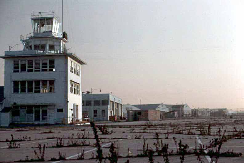 A circa 1975-76 photo by Jim Babin of the San Pedro control tower & several hangars.