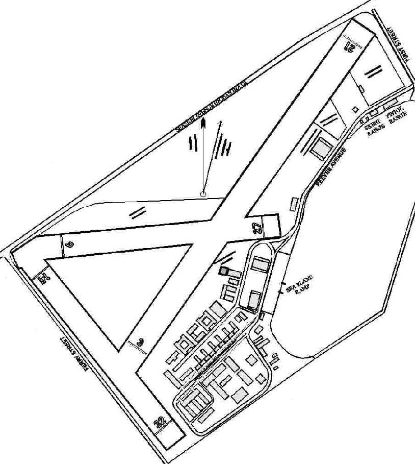 depicted 3 runways, buildings, and the seaplane anchorage.