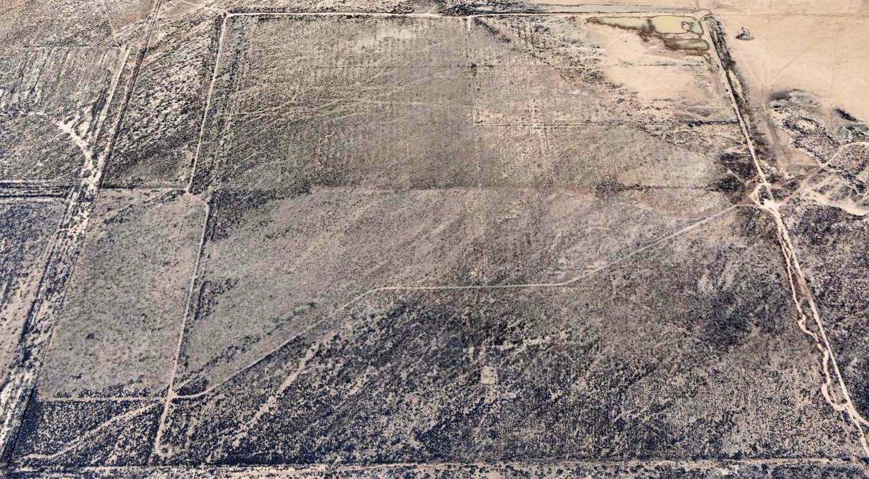 Along the east side there is a road that runs north & is lined with the bottoms of cut down utility poles.