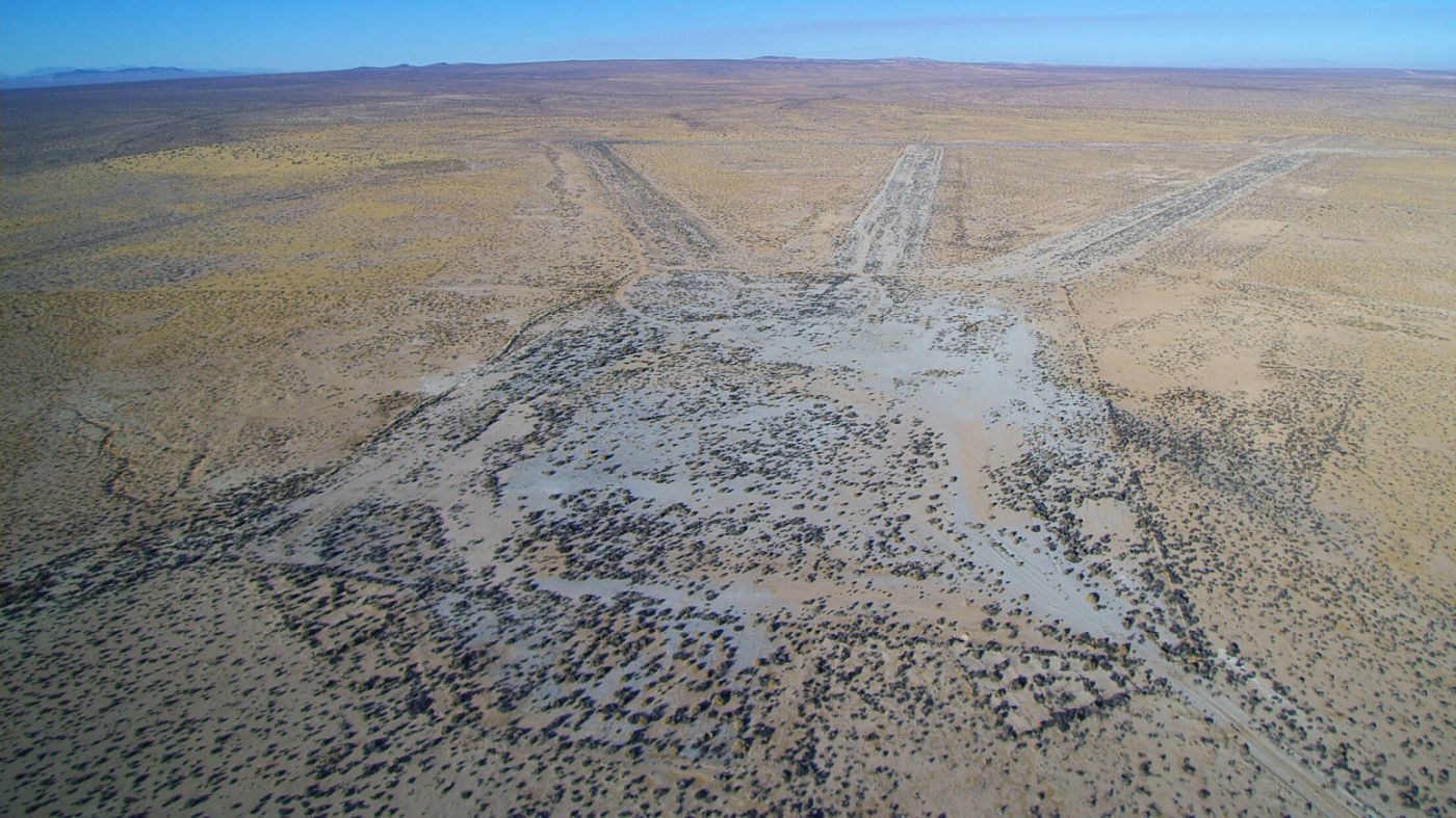 A 2021 photo looking northeast along the former US Borax Airfield runway.