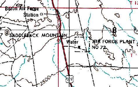 The Boron Air Force Station, an early-warning radar installation, was located 4 miles northwest, on the opposite side of Route 395.