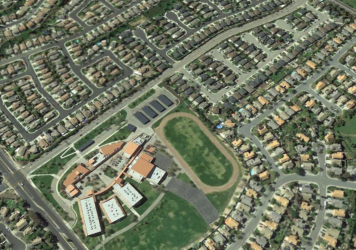 A 2003 photo by Jonathan Westerling looking west along what used to be the orientation of the Antioch runway, now a high school & housing development.