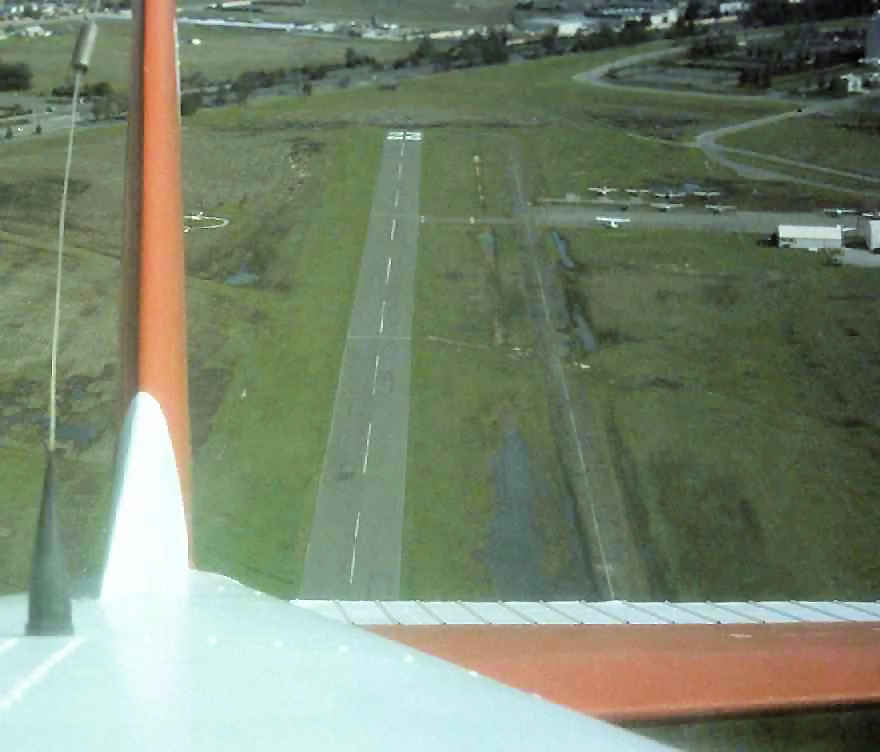 “Every once in a while the wind would make this a crosswind field & in 1968 the second runway was added. It was paved also, but very narrow, with soft sand on both sides.”